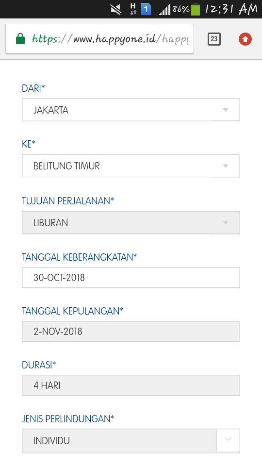 membutuhkan produk proteksi dari happyTrip selama 4 hari dengan tujuan Jakarta –
