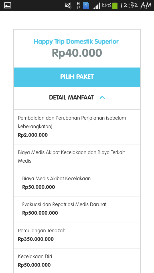 perhitungannya. Pilihan saya jatuh pada happyTrip Domestik Superior dengan