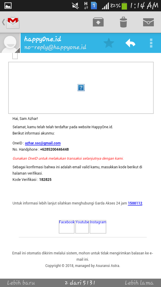 kita dengan benar untuk melakukan registrasi. Berikutnya cek email yang masuk dan