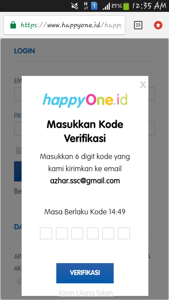 Salin kode verifikasi yang dikirimkan melalui e-mail